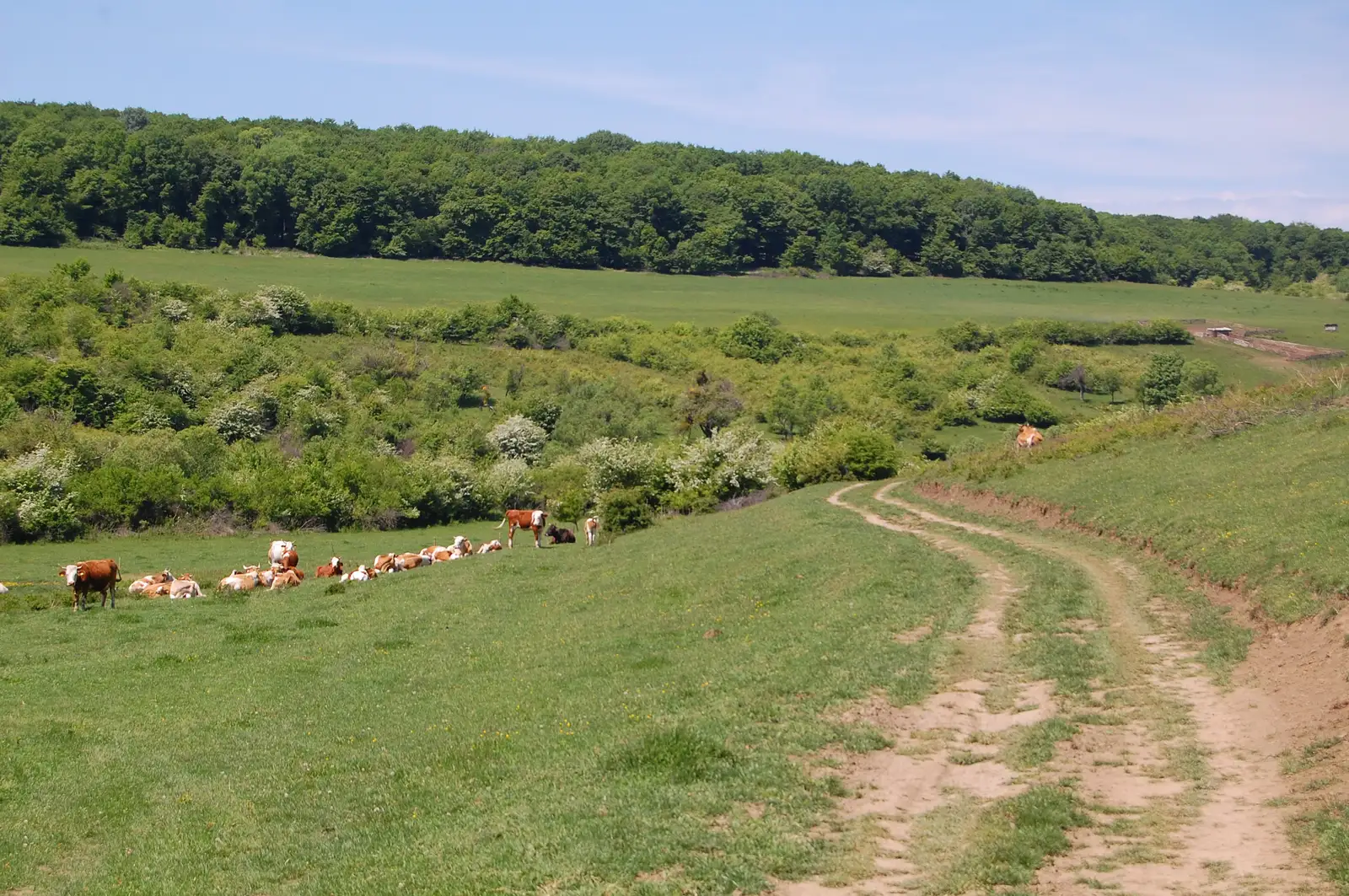 După vizitarea localităţilor Daia, Roşia şi Vurpăr, ne înscriem în urcare pe o strada ce pleacă de lângă şcoala din Vurpăr. Continuăm pe un drum de pământ tăiat în Dealul Nucului (deci nu e chiar pe culme), paralel cu Valea Almăjel. Acest drum este în plan de a fi marcat cu CR în viitorul apropiat. După intrarea în pădure drumul nu mai este aşa de clar, fi ind prezente o mulţime de drumuri care se întretaie, însă menţinem direcţia şi ieşim pe drumul forestier Hula Hambei, drum marcat cu BR, pe care avem de mers nu mai puţin de 7,8 km. La o intersecţie cotim s tânga pe un drum forestier mai bun, care în scurt timp coboară spre Nou, în câteva serpentine. Ieşim din pădure la păşune şi continuăm pe drumul de pământ ce coboară prin luncă. Este o coborâre lungă, aşa se numeşte şi pârâul (Valea Lungă) de-a lungul căruia coborâm uşor. La un moment dat drumul se desparte în două, unul chiar pe lângă vale, iar c elălalt paralel, pe versantul stâng. Amândouă duc în localitatea Nou. De aici, folosind DC54 asfaltat revenim la Daia de unde am