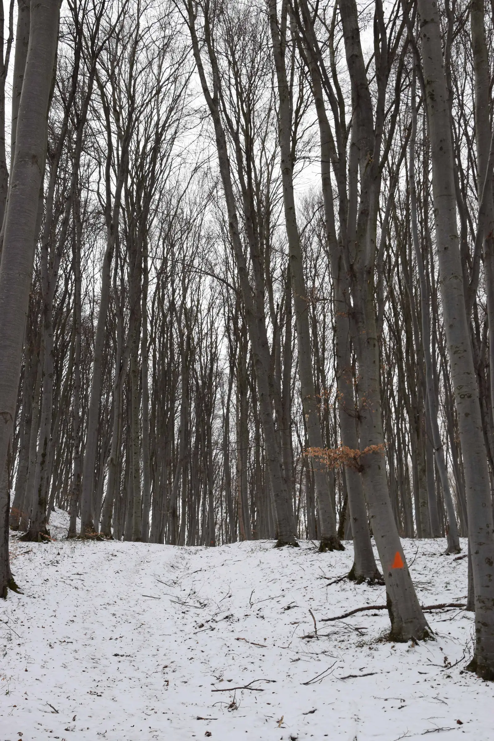 Din Drumul Sălicei, lângă o troiță și panoul de limită a Comunei Ciurila, intrăm în pădure pe o potecă largă cu marcaje nestandard - Triunghi Portocaliu fără fond alb. Poteca traversează rând pe rând traseele consacrate spre vârful Peana, respectiv CA (traseul 3), CR (traseul 4) și traseul principal BA (traseul 2). Un parcurs aproximativ pe curbă de nivel, în direcția Izv. Dr Bilașcu, traversând rezervația Făgetul Clujului.
