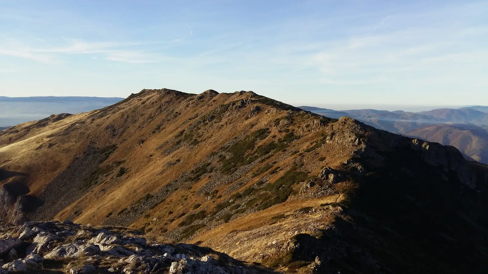 Pe măsură ce înaintăm, lăsăm prăpăstiile Mehedințiului în spate. Doar Vârful lui Stan, cel mai înalt al acestor munți, cu marele său abrupt dinspre partea nordică,mai este vizibil. Urmăm culmea când la stânga, când la dreapta către mărețul Godeanu. Vârfurile se succed unul după altul și mai toate încep cu litera B: Boldoveni – 1800, Babei -1825 , Bandiolu 1816, cu șei destul de adânci între ele. Poteca are aspect de alee, fiind însoțită și de un drum pastoral, care amintește că Munții Cernei sunt în primul rând, munți ai oierilor.