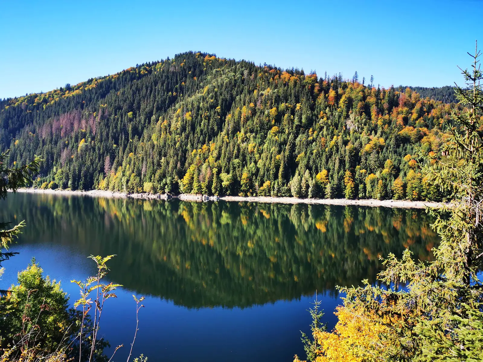 Când ajungem pe drumul asfaltat ne îndepărtăm un pic de lac şi ajungem la drumul DJ108K şi imediat suntem la punctul de pornire al traseului.