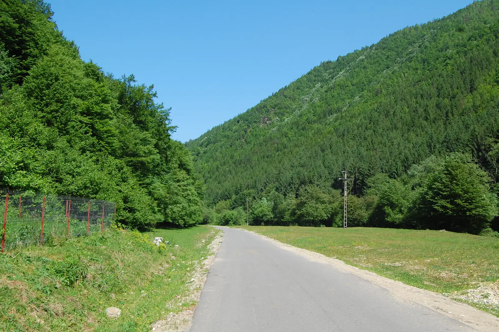 Revenim pe drum și urcăm pe versant, deasupra satului Federi pe culme, apoi coborâm într-o poiană cu fântână, de unde drumeagul urcă spre dealul Robului, pe un platou carstic cu doline. Trecem prin pășuni, pâlcuri de pădure și sălașe pitorești și ajungem apoi la terasamentul unei căi ferate forestiere cu ecartament îngust, săpat în stâncă pe deasupra zonei Fundătura Ponorici, sora mai mică Fundătura Ponorului, două lunci extrem de fotogenice prin care meandrele pârâurilor șerpuiesc înainte de a intra în subteran.