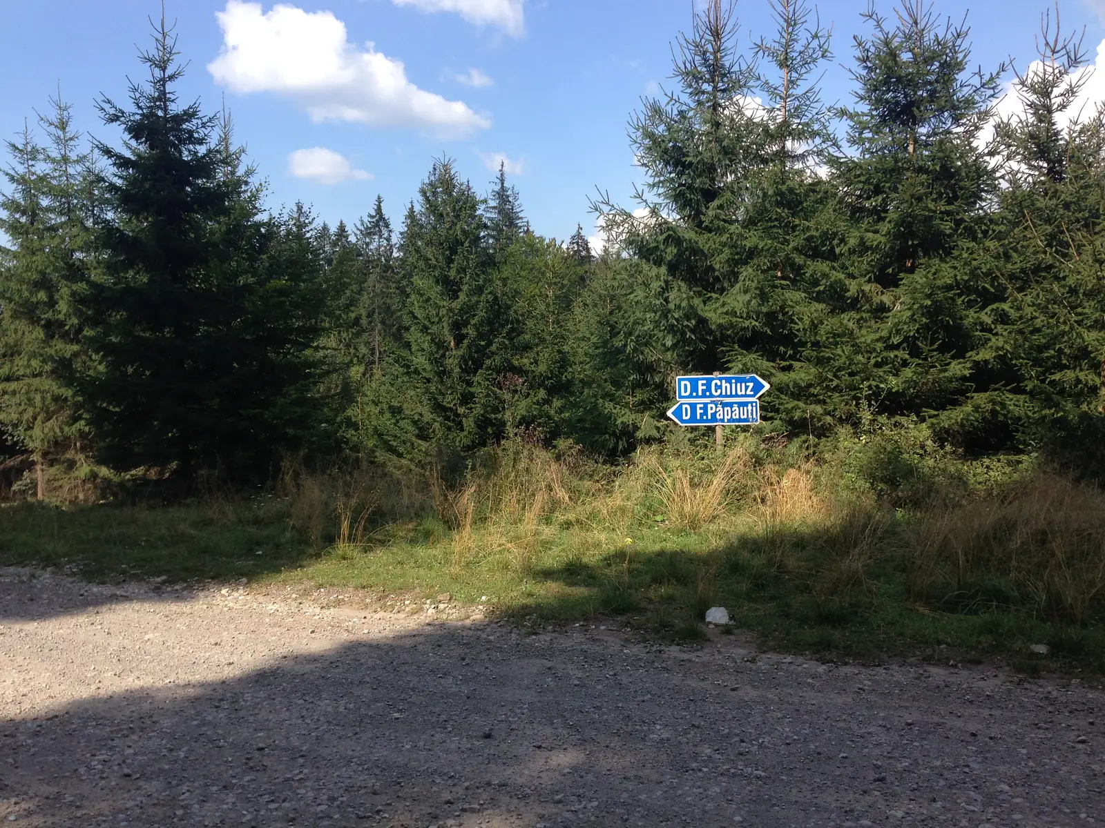 Ieșim din satul Păpăuţi spre NE, urmând valea pârâului Păpăuţi, apoi ținem drumul principal spre dreapta, în urcare până pe creasta Vârfului Bradului, unde ocolim vârful. Continuăm pe drum până la intersecția cu traseul principal BR (traseul 1) - în pasul dintre Păpăuţi şi Comandău, lângă o cabană privată și un panou informativ.
