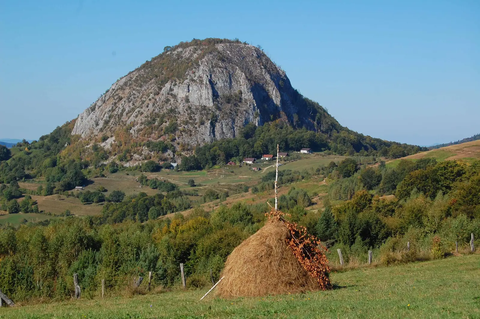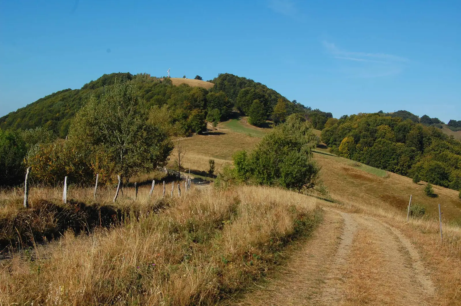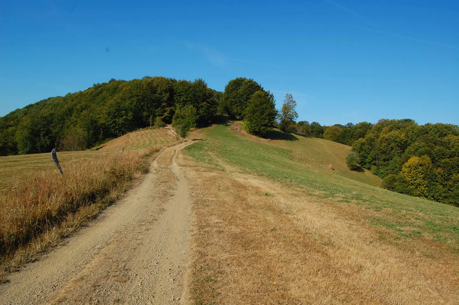 Este un traseu potrivit pentru a fi parcurs cu o bicicletă de munte. În acest caz este de preferat parcurgerea în direcția est-vest, datorită faptului că astfel beneficiem de mai multă coborâre. La circa 80 m mai jos de Pasul Bucium (Şaua Arsurilor), spre Abrud, din DN74 se desprinde spre vest un drum pietruit. Urmăm acest drum care urcă făcând întâi două-trei serpentine, apoi se înscrie pe direcția vest. Trecem prin fânațe și pâlcuri de pădure, pe lângă niște case aparținând cătunului Ruși, iar Vârful Pietriceaua (unde este înălțat un releu de comunicații) este ocolit prin stânga (sud). Aici este cel mai înalt punct al traseului, de unde începe o lungă și frumoasă coborâre lină, bineînțeles întreruptă de mici porțiuni drepte sau de urcări scurte. Din diverse puncte a traseului admirăm siluetele inconfundabile ale vârfului Bradișorului sau ale masivului Vulcan, spre care ne îndreptăm. După Vârful Pietriceaua și următorul vârf (pe care se află montat un hochstand - un observator de vânătoare) îl ocolim tot prin dreapta (sud). Lăsăm pe dreapta (nord) niște sălașe de vară, apoi drumul merge chiar pe marginea unei păduri, pentru a intra apoi într-o pădure serioasă, cu fagi mari pe Dealul Pietriceaua (Duşul). După o poiană frumoasă drumul ocolește următorul vârf împădurit, de data aceasta prin dreapta (nord), apoi iese din nou în zona de pășuni și fânațe. Trece pe lângă niște sălașe și se înscrie pe un traseu tăiat în culmea dealului, pe versantul sudic, o pășune presărată cu pini și ienuperi. Ne apropiem de pitorescul Vârf Bradișorul, un bulz de piatră la baza căruia sunt construite mai multe case și cabane. După o troiță folosim un drum care ocolește piatra prin dreapta (nord) trecând pe lângă gardurile caselor, apoi intră în pădure. Urmează mai multe poieni și porțiuni de pădure, intersecții de drumuri unde suntem atenți la marcaje. Pe o coastă (tot sudică) întâlnim din nou ienuperi și pini, de data aceasta mai compacți, apoi într-un mic luminiș o cruce de piatră veche. Urcăm în Vârful Runcului (împădurit) de unde cotim ușor dreapta (nord-vest). Traversăm o porțiune de pădure defrișată unde pădurea se reface și din păcate la un moment dat marcajul părăsește drumul bun de culme și apucă pe o potecă slab conturată care ocolește prin dreapta (nord) un vârf împădurit, prin tăieturi. Nu peste mult timp întâlnim din nou drumul care duce la un releu de comunicații aflat la vest de poziția noastră, drum pe care coborâm în Pasul Buceș-Vulcan, nu înainte de a admira silueta masivului Vulcan aflat în imediata apropiere.