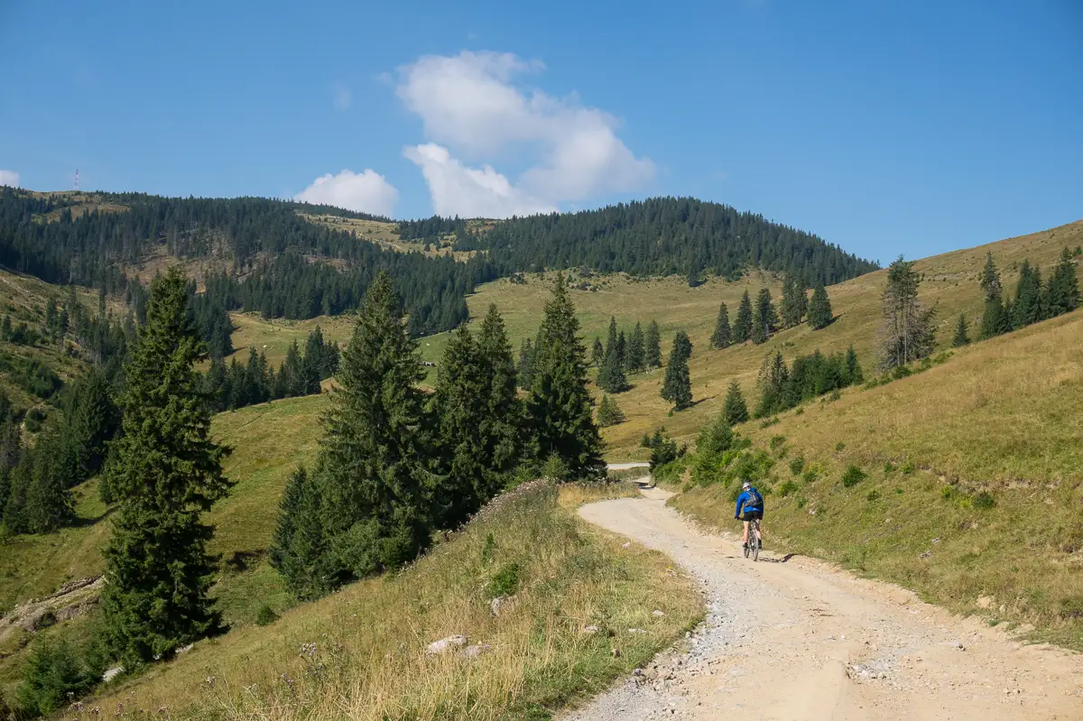 De lângă cabană vom începe o lungă coborâre, trecând inițial prin Tarniţa Bălăsânii - marcată cu o cruce metalică. În față avem vârfurile Muntelui Jupania / Bălăsânii. În Tarniţa Bălăsânii facem dreapta și urmăm drumul forestier de-a lungul Văii Izvorul Ursului, care ne conduce în Valea Țibău, pe care o urmăm până la un grup de colibe şi un ocol silvic.