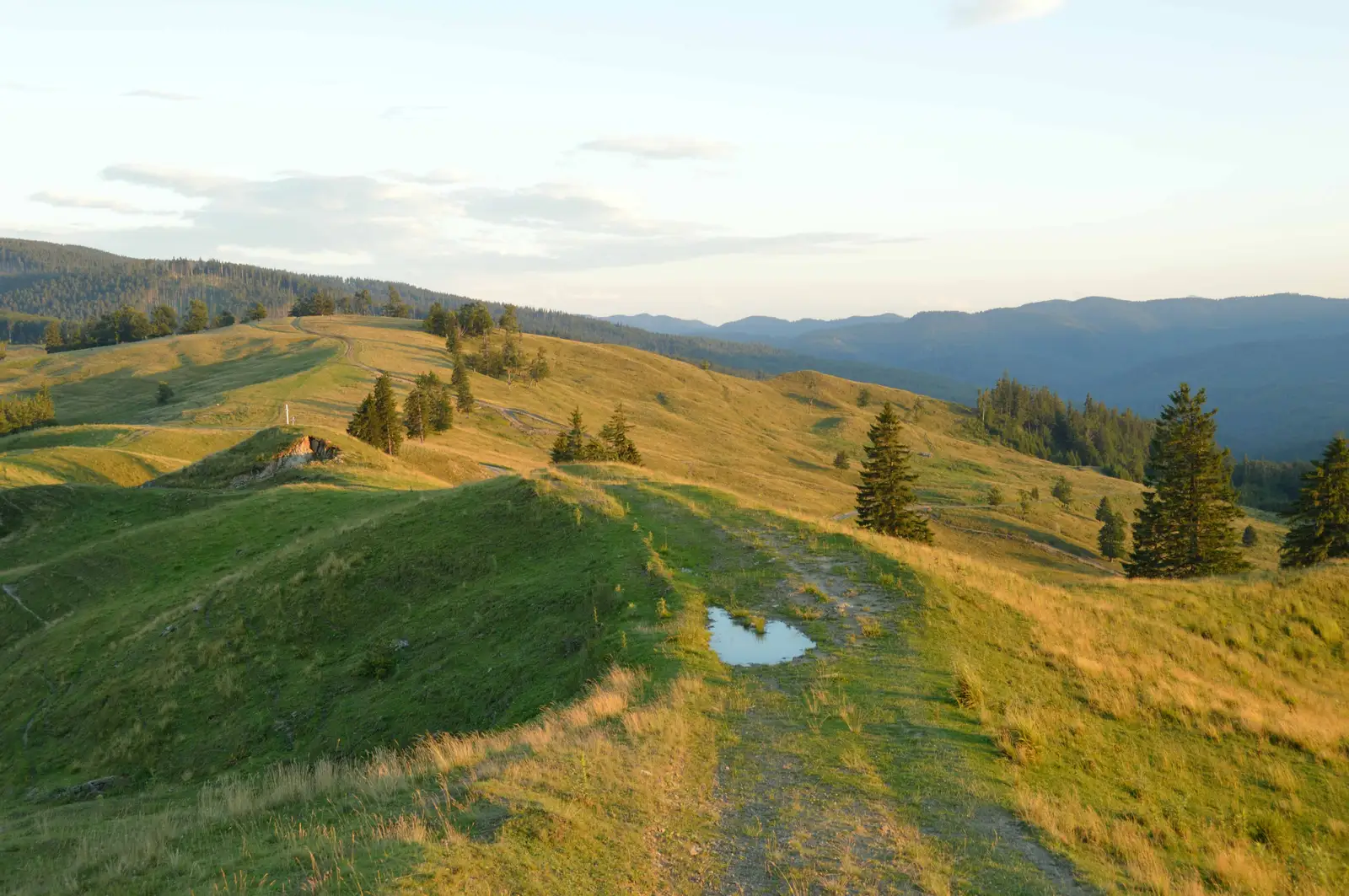 Primii 4,6 kilometri ai rutei sunt comuni cu traseul CA. Se desprinde de acesta spre stânga, angajându-se pe valea pârâului Bălosu, iar după 6,8 kilometri ajunge în Golul Pietrosului. Aici intersectează traseul BR, iar apoi coboară în Valea Zăbalei, ajungând la Cabanele Giurgiu după parcurgerea a 1,5 kilometri. Continuă pe această vale alţi 6,6 kilometri, iar la confluenţa cu pârâul Goru întâlneşte traseul CA. Continuă următorii 4,7 kilometri pe Valea Zăbalei, apoi pe valea pârâului Mârdanu, după care se înscrie spre dreapta pe muntele Mârdanu, iar după 1,2 kilometri înâlneşte traseule TA. Cele două trasee se dublează pe porţiunea finală spre Vârful Lăcăuţi, iar după 3,1 kilometri de urcare susţinută întâlnesc în zona de creastă traseele BR şi PA, alături de care ajung pe vârf în scurt timp.