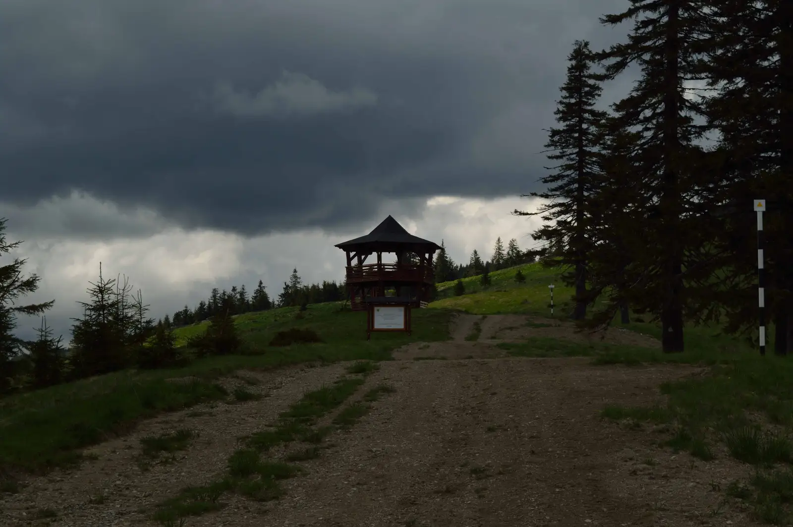 Traseul pleacă din dreptul Refugiului Centenar (Punctul Frăţiei Româneşti) şi coboară cale de 5,6 kilometri pe un drum forestier orientat mai întâi pe direcţia sud-est, apoi spre sud-vest, până în valea râului Bâsca Mică, unde întâlneşte drumul pietruit care face legătura între localităţile Comandău (jud. Covasna) şi Varlaam (jud. Buzău). Se înscrie spre stânga pe acest drum, ce urmăreşte fidel valea râului, iar după 23,9 kilometri ajunge în centrul localităţii Varlaam.