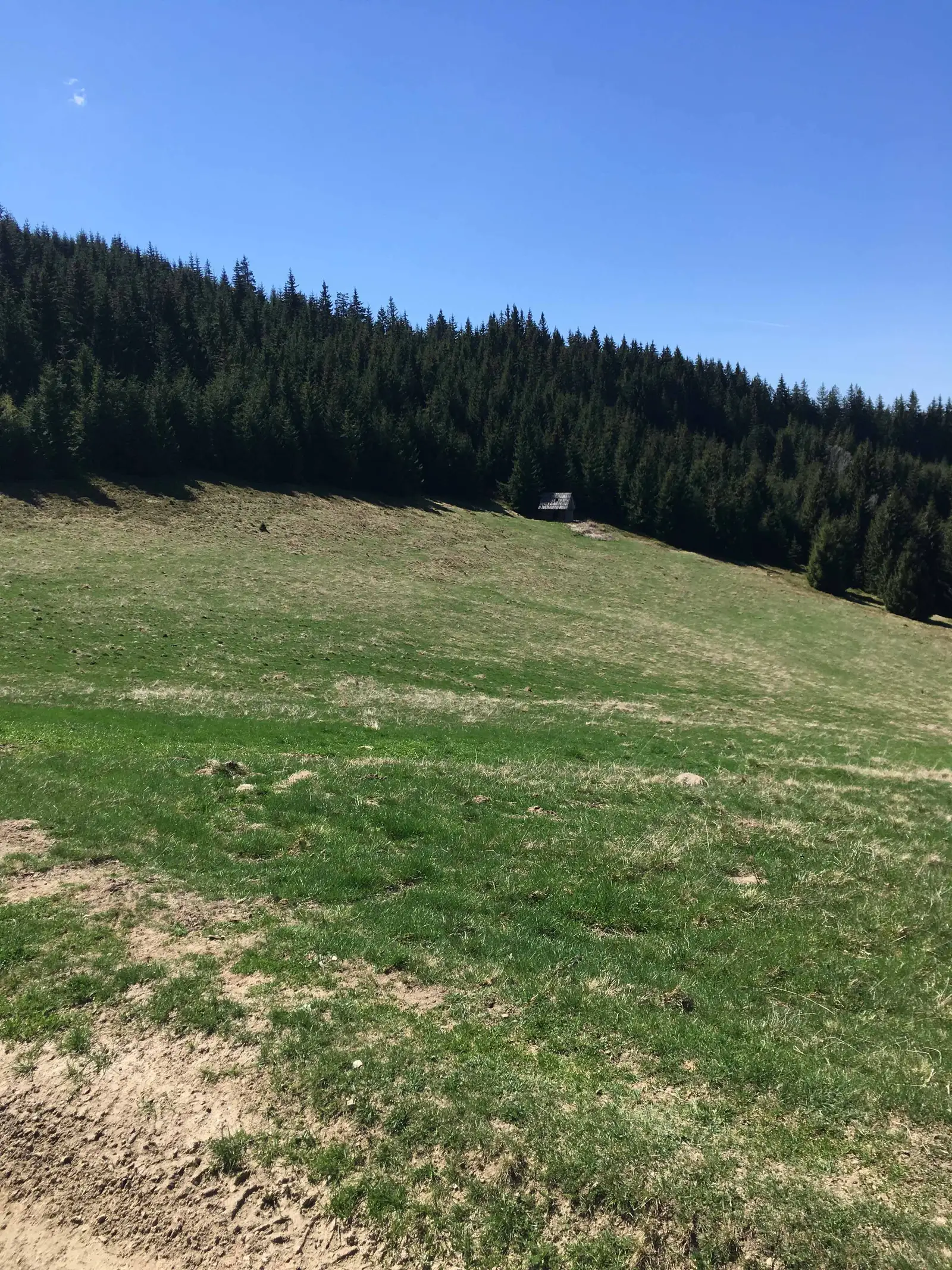 Din Şaua Apa Cumpănită suntem însoțiți de marcajele BR, urcăm până în Poiana Tomnatec, apoi părăsim traseul de creastă şi urmăm poteca de sub Vârful Curcului (1553 m), care coboară ușor pe curbă de nivel până în zona Şanta, marcată TA (traseul 20).