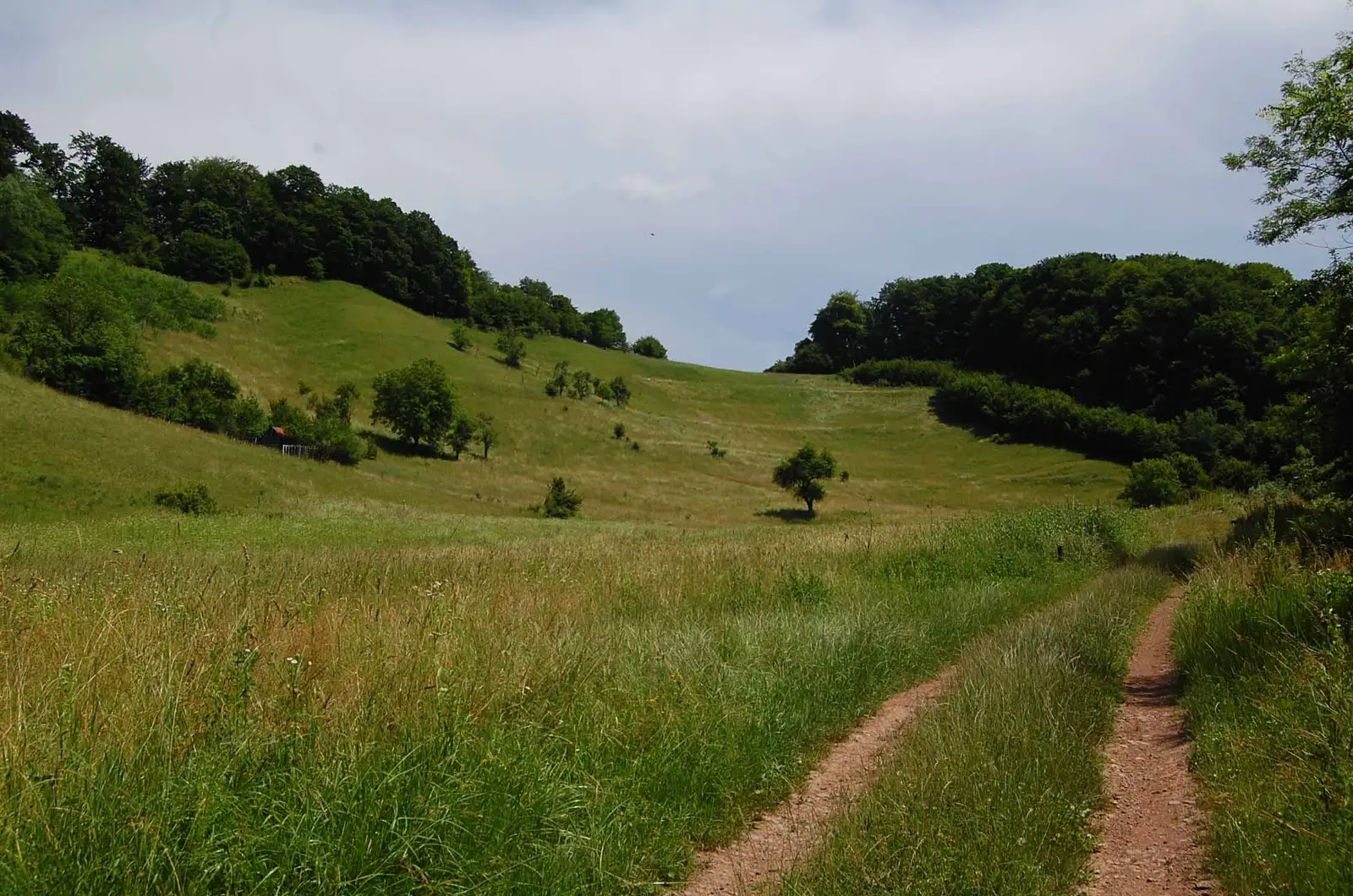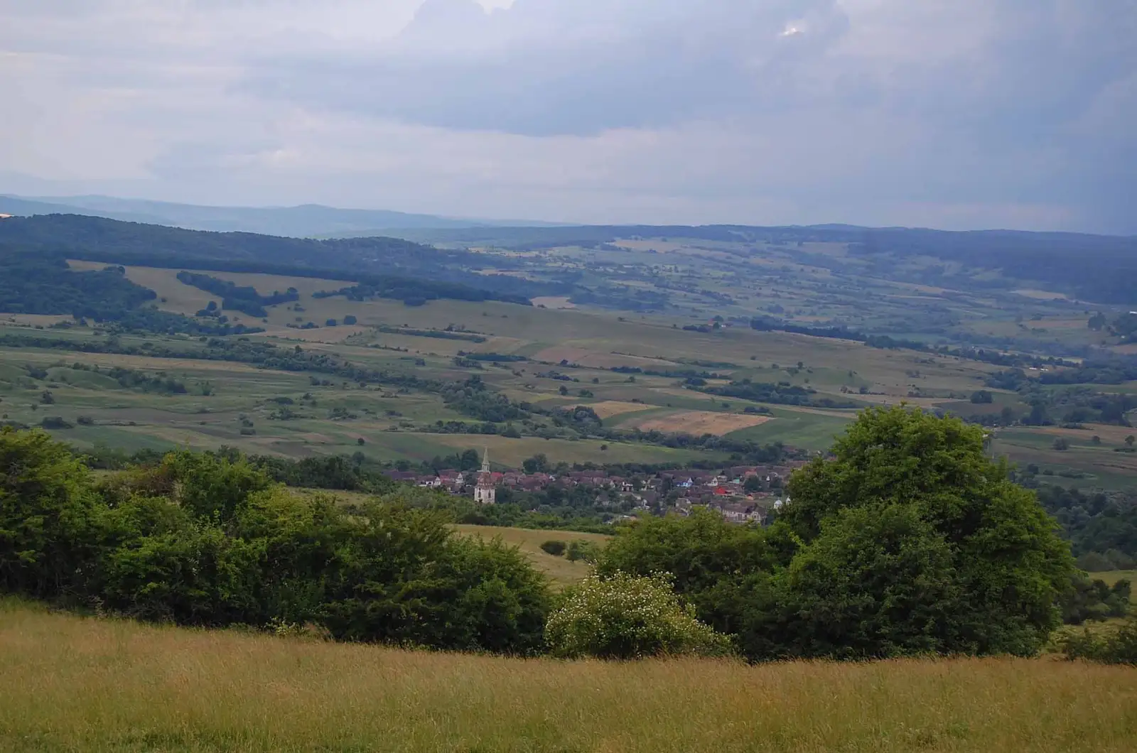 Urcăm pe lângă detaşamentul de pompieri printr-o zonă de case şi cabane, apoi prin pădure de-a lungul Văii Dracului. Ieşim într-o frumoasă poiană cu sălaşe de vară, apoi urcăm în culmea dealului, pe care o părăsim după o vreme spre stânga, pe un drum înierbat, cu peisaje frumoase, pe deasupra satului Şapartoc. Intrăm pe o potecă special construită pentru biciclete, marcată cu BR, care la început coboară în serpentine prin pădure, apoi urmează un parcurs relativ drept. Ieşim într-o păşune cu copaci mari şi rari, asemanănătoare cu platoul Breite, apoi urmărim culmea şi înconjurăm circular valea Hula. Din cel mai înalt punct, unde se afl ă un rezervor de apă dezafectat (dealul Birom) urmăm săgeata BA şi coborâm pe un drum de pământ în satul Daia. Traseul face un mic ocol pe uliţele satului pentru a trece pe la Biserica Evanghelică, apoi folosind drumurile de macadam DC56 şi DC56A ajungem rapid în satul vecin Vulcan. Traversăm localitatea, apoi o porţiune de pădure şi ajungem „La Trei Drumuri” (care sunt de fapt 5). În 250 m urmăm spre stânga o potecă specială pentru biciclete (marcaj CA). Coborâm mai bine de 8 km pe un single-trail cu pantă moderată, serpentine şi mici amenajări. Apoi strazile Lunca Poştei, Axente Sever şi George Coşbuc ne duc rapid în centrul oraşului.
