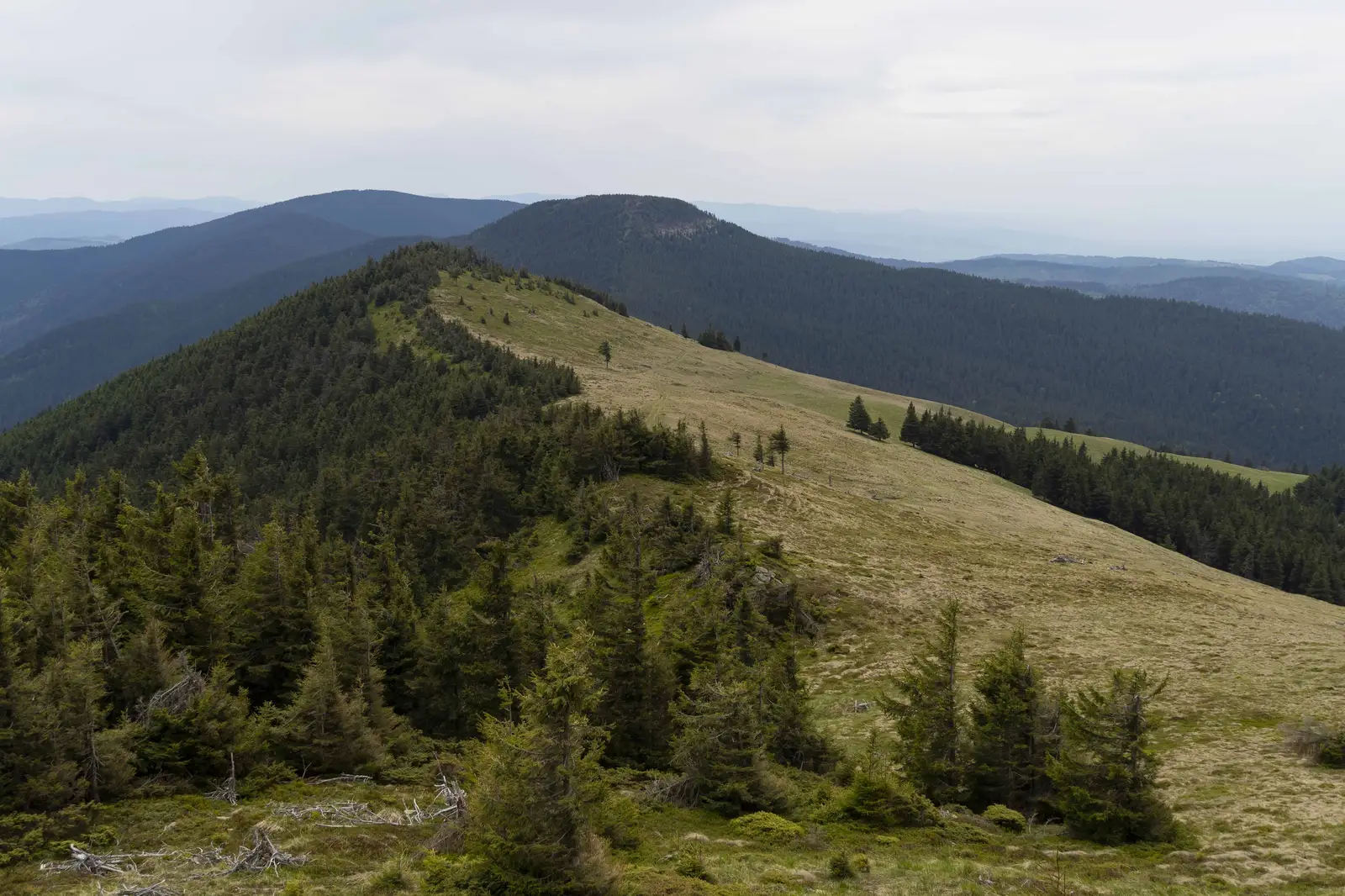 Din dreptul fostului camping Rai, pornim la dreapta în urcare pe Piciorul Jiroș, continuăm pe pantele estice ale Culmii Căprioara, apoi ținem culmea principală, prin pădurea de molizi până ieșim în Poiana Stânii, de unde putem admira obârșia văii Slănic și zona sudică a Munților Nemira, cu Vf. Ceangău (traseul 13).
