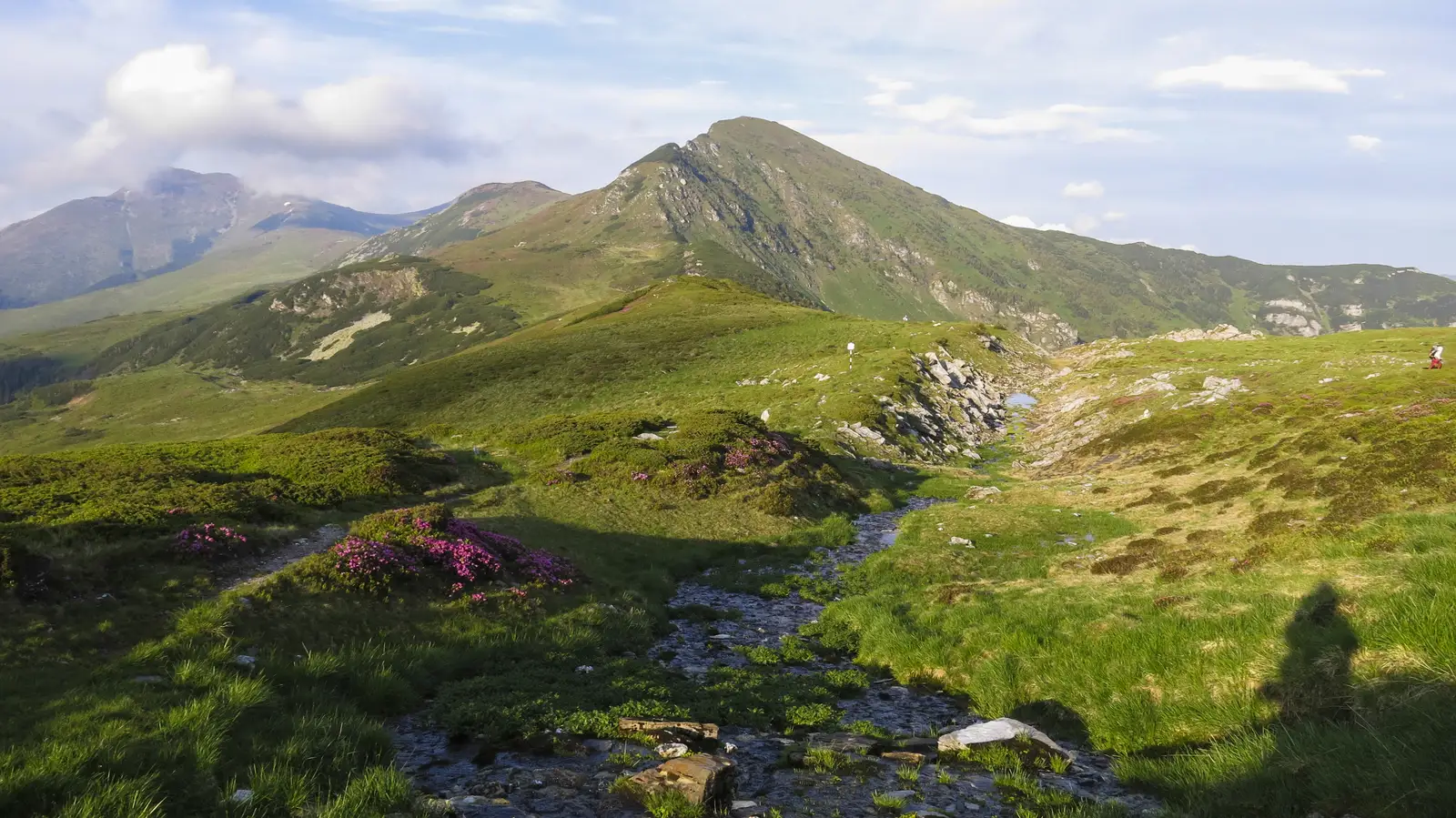 Revenind la traseu, traversăm pe rând pâraiele bazinului văii Moara Dracului, ghidați de stâlpii de marcaj până la indicatorul unde marcajul TR (traseul 17), ce ne-a însoțit de la debut, se avântă printre ienuperi, jnepeni şi pâlcuri de grohotiş spre Vârful Buteasa (1792 m), de pe care se deschide o largă panoramă asupra întregului masiv al Vlădesei. Poteca spre vârf este clară şi bine marcată așa că merită efortul suplimentar.