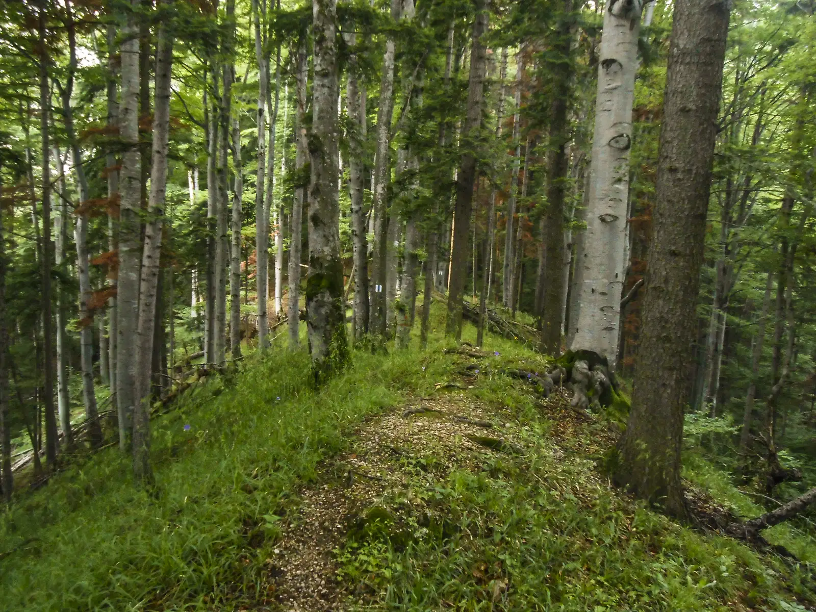 Depășim rând pe rând, releul TV, stația veche de telecabină, capătul teleschiului Postăvaru și stația releului de transmisiuni, apoi continuăm pe culme (drum de exploatare) i facem dreapta la stația de sus a telecabinei Kanzel și intrăm în pădure.