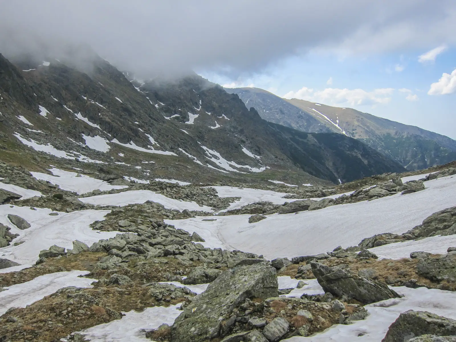 După ce depășim un prag, pătrundem în Câldarea Mioarelor, o căldare suspendată înierbată punctată cu bolovani. Urcăm apoi un alt prag înierbat, pentru a ieși în Şaua Cleopatra (2364 m alt). De aici, urmând traseul crestei principale (traseul 1B) putem ajunge la Vârful Negoiu și mai departe, prin Strunga Ciobanului, către Lacul Călțun.