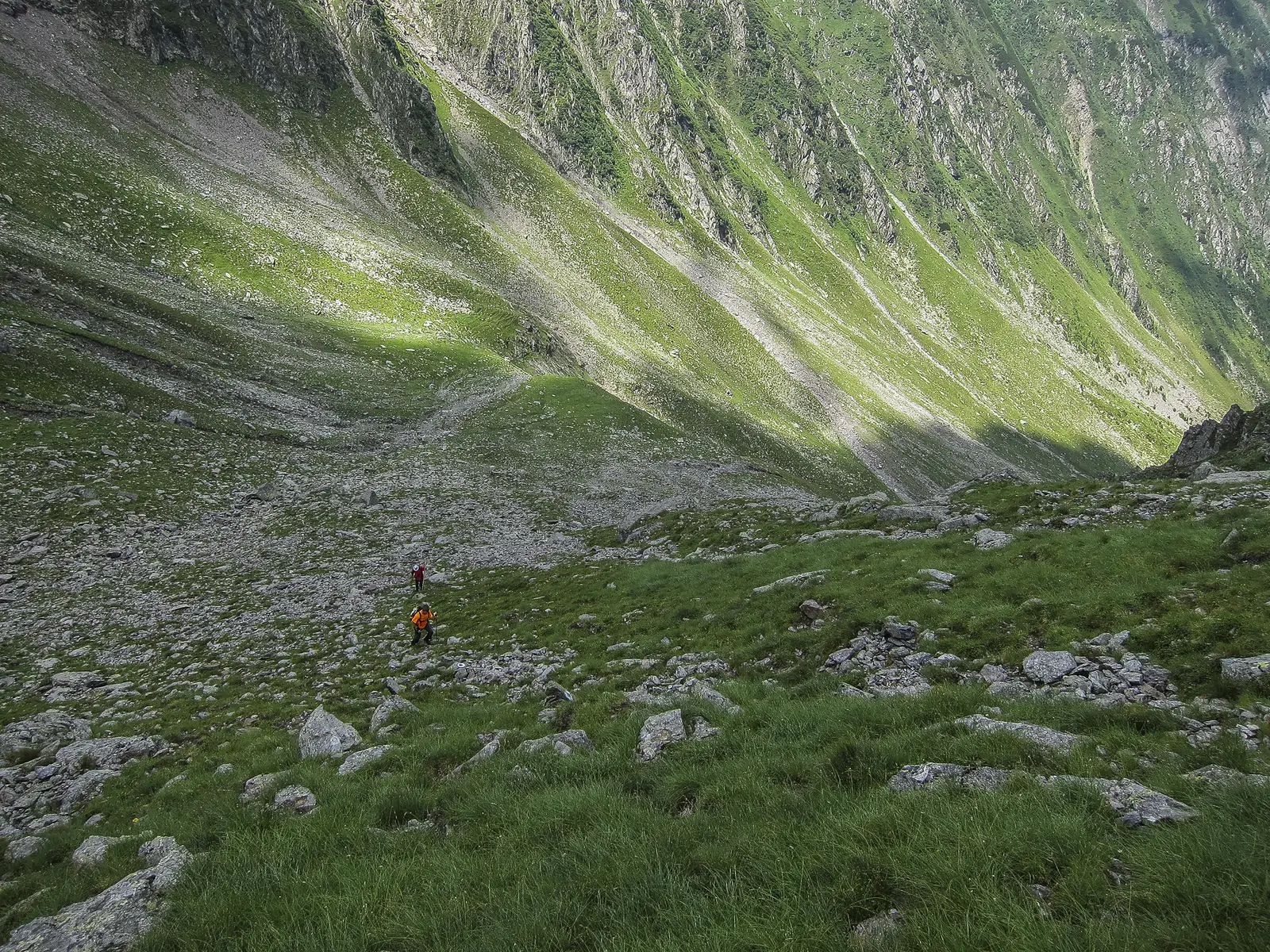 Lacul Viştişoara (2040 m) se află sub Șaua Viștișoarei, în căldarea V. Viștișoara. De-aici începe urcușul anevoios pe o potecă greu de identificat datorită viiturilor care au spălat patul potecii şi marcajele. Urcăm prin Curmătura Răcorelelor, apoi ocolim fundul căldări pe o potecă care șerpuiește spre a doua terasă a căldării, unde se găsesc 2 bălți.